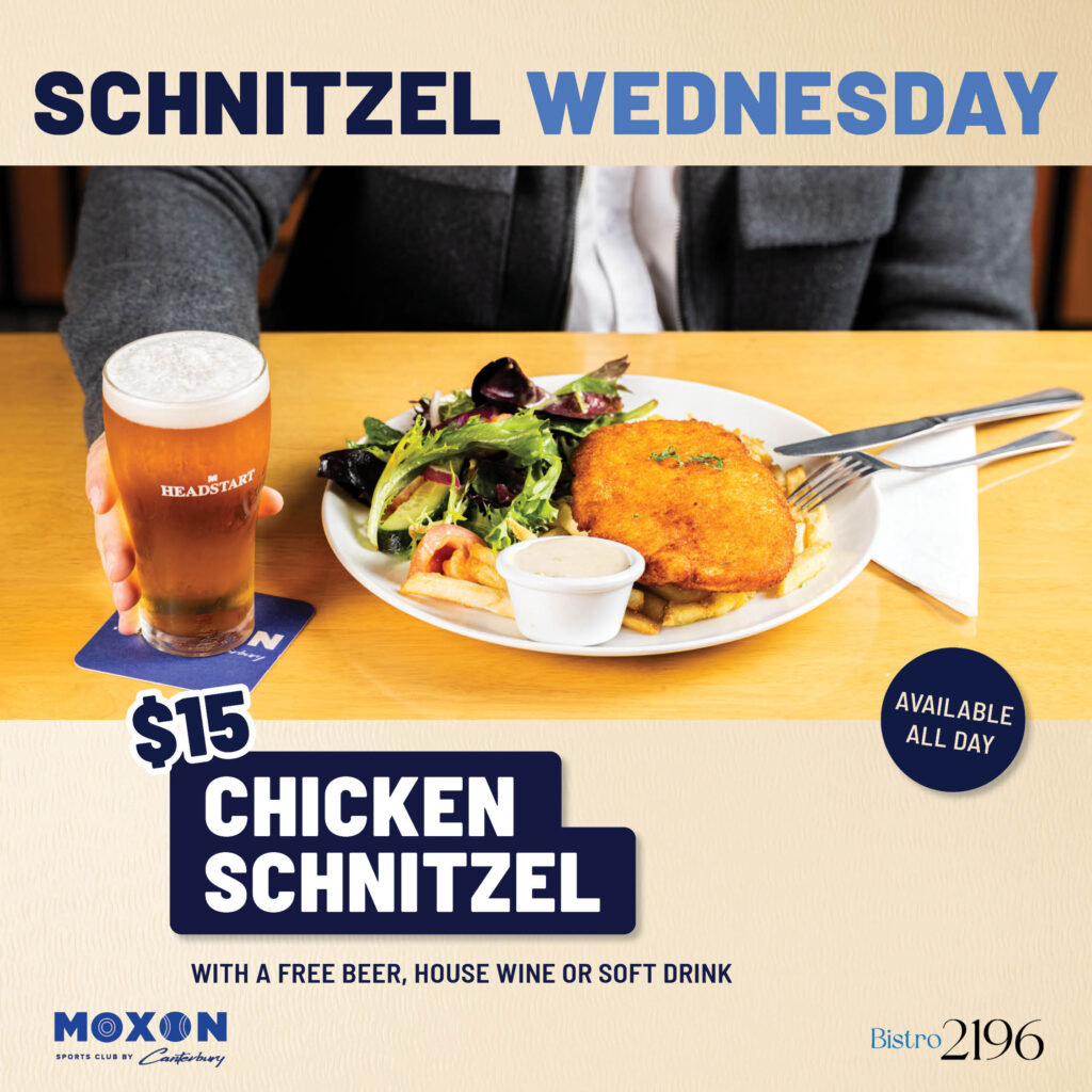 Enjoy a golden, crispy chicken schnitzel served with chips and salad for just $15